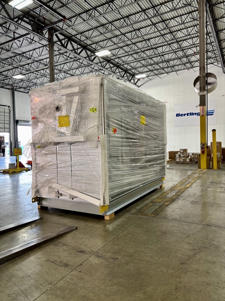The unit weighs just under 2,000 lb and measures 158” x 93” x 105”, handled as OOG cargo under a door-to-port scope – including technical loading and lashing.