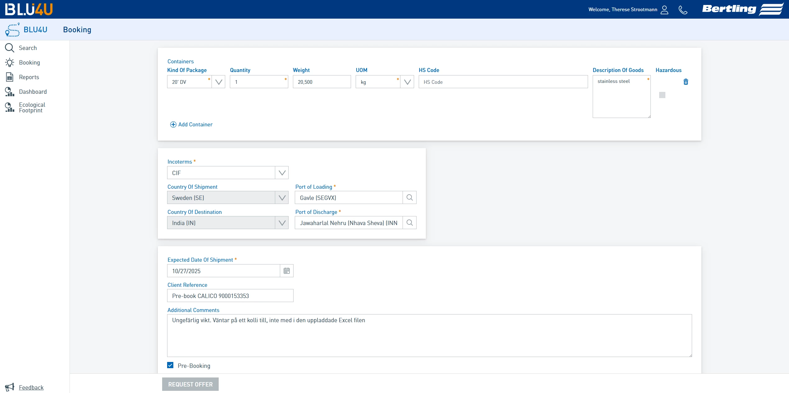 If you would like to find out more about our booking platform, click here. To arrange a demo, send an email to BLU4U@bertling.com.