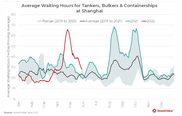 As Shanghai springs back to life after two months of lockdown, congestion at the port is almost back to normal, according to the latest data from VesselsValue.