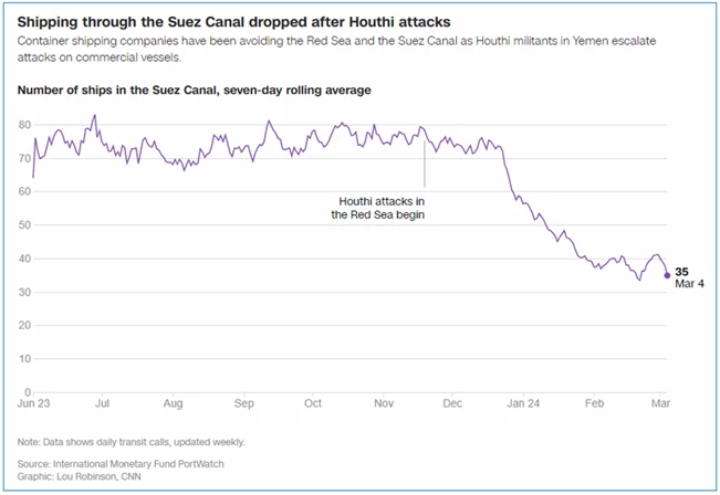 Windward data shows that last month the number of bulk carriers in the Red Sea was already at its lowest level in two years. (Source: Fatal Houthi rebel attack may be a ‘red line’ in Red Sea shipping crisis).