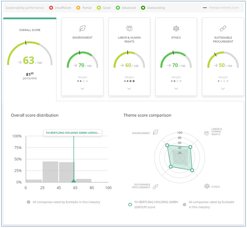 Despite the rapidly growing number of companies assessed by EcoVadis, we are in the leading top 35% compared to other companies of our size.